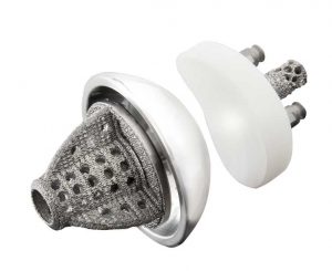 The Equinoxe Stemless Shoulder was introduced in the U.S. in 2018 and is manufactured using direct metal 3D printing with high precision lasers to create its porous bone cage. This humeral component’s bone cage structure is designed for initial press-fit and biologic fixation.