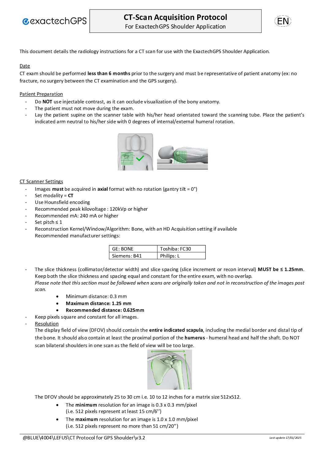 CT Scan Acquisition Protocol for Exactech GPS Shoulder Application – EN v3.2