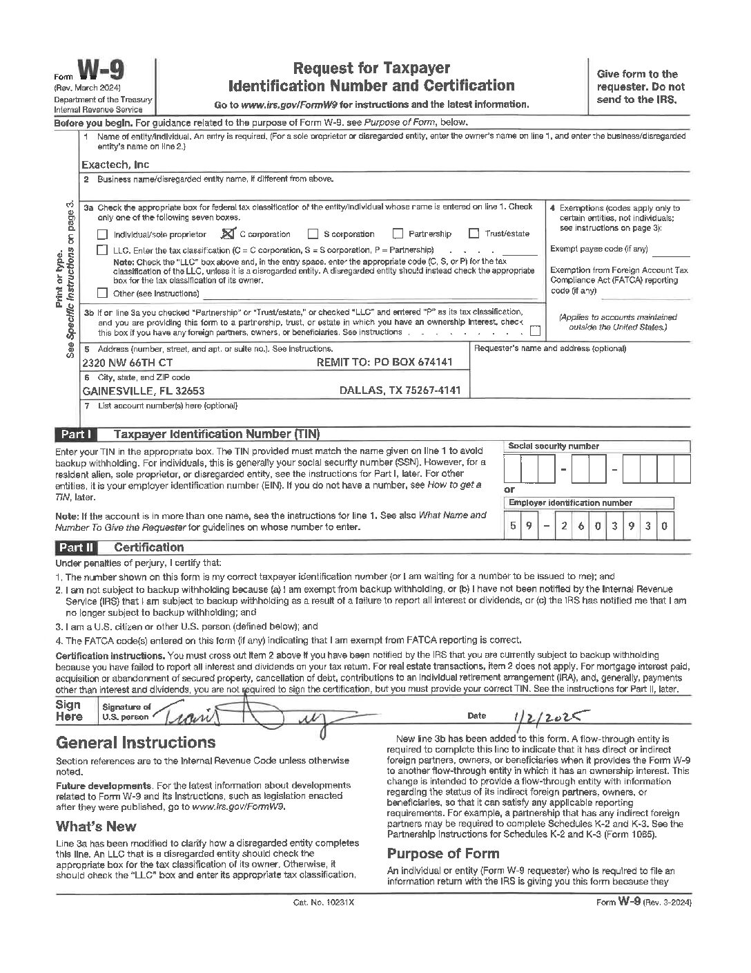 W-9 Request for Taxpayer Identification Number and Certification